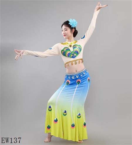 西双版纳傣族舞孔雀舞鱼尾裙 |..